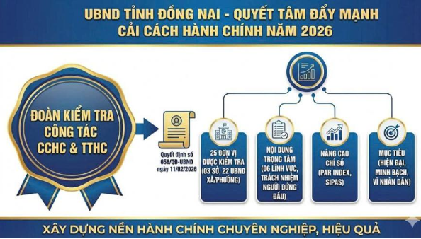 Ngày 11/02/2026, UBND tỉnh ban hành Quyết định số 658/QĐ-UBND về việc thành lập Đoàn kiểm tra công tác cải cách hành chính và kiểm soát thủ tục hành chính năm 2026.