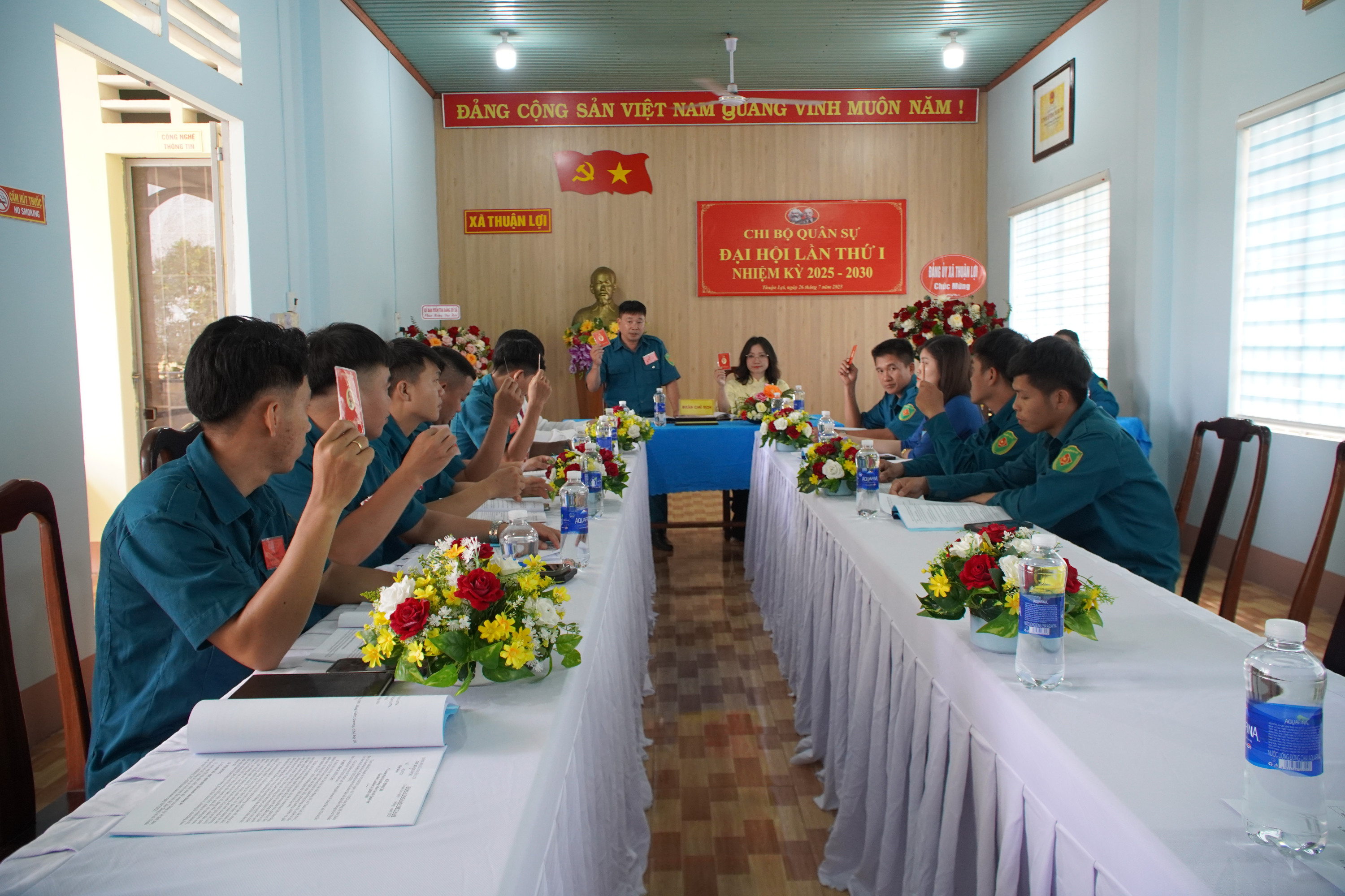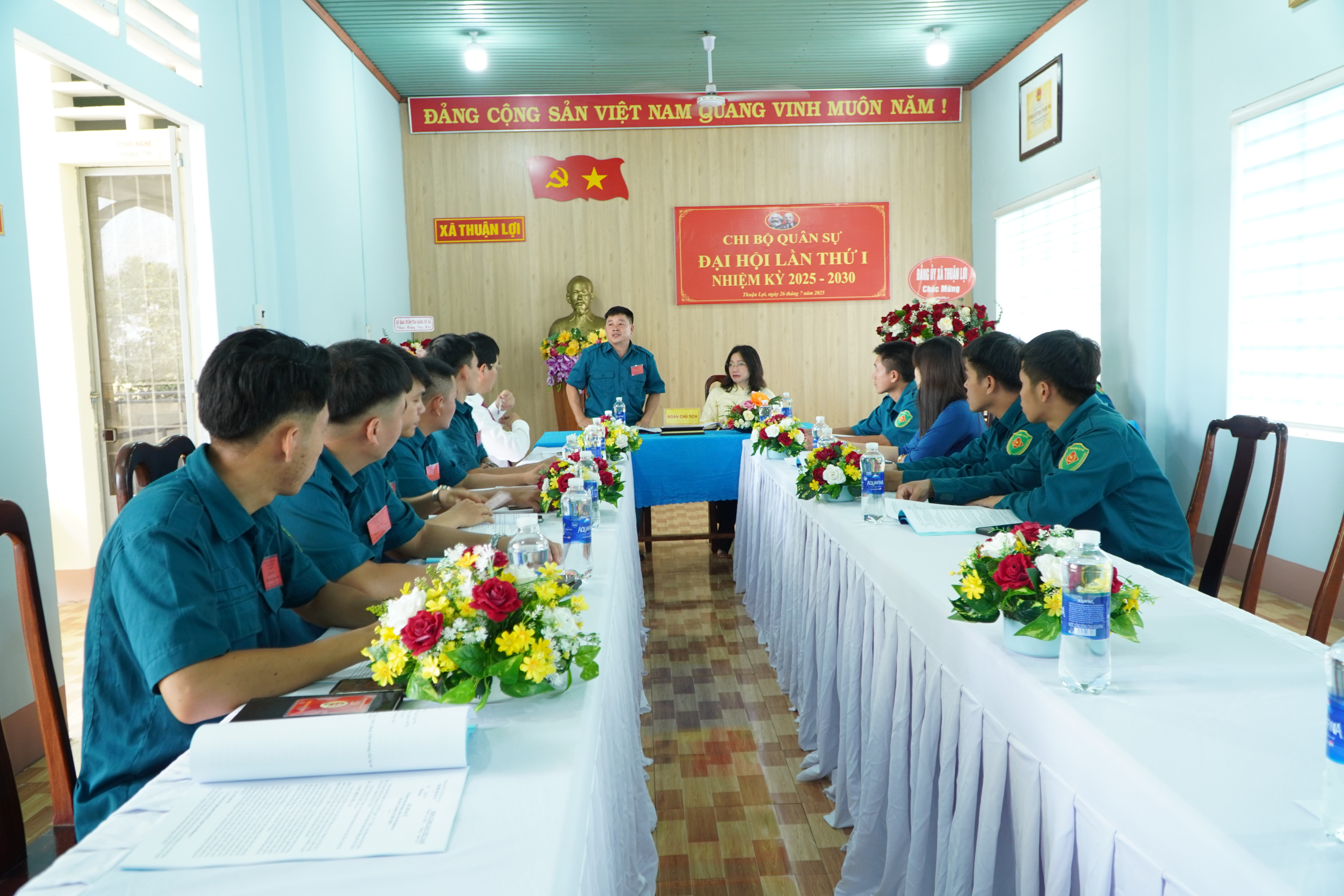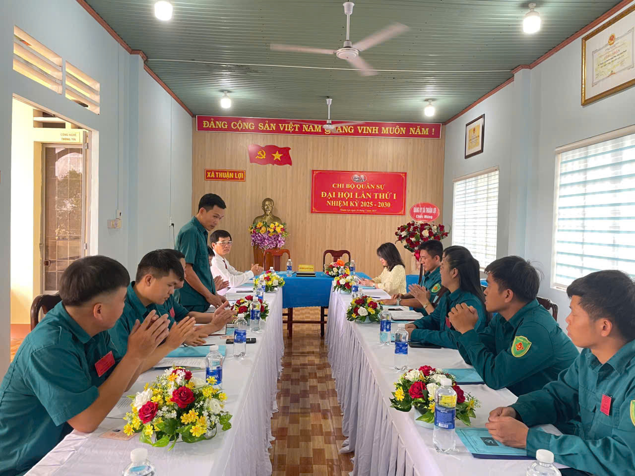 Chiều ngày 26/7/2025, Chi bộ Quân sự xã Thuận Lợi đã tổ chức thành công Đại hội lần thứ I nhiệm kỳ 2025 - 2030. Đồng chí Bùi Thị Minh Thúy, Bí thư Đảng ủy xã, Bí thư chi bộ Quân sự xã dự và chỉ đạo đại hội. Về dự Đại hội có đồng chí Hoa Vận Định, Phó Bí thư Đảng ủy, Chủ tịch UBND xã, cùng toàn thể các đồng chí đảng viên trong chi bộ.