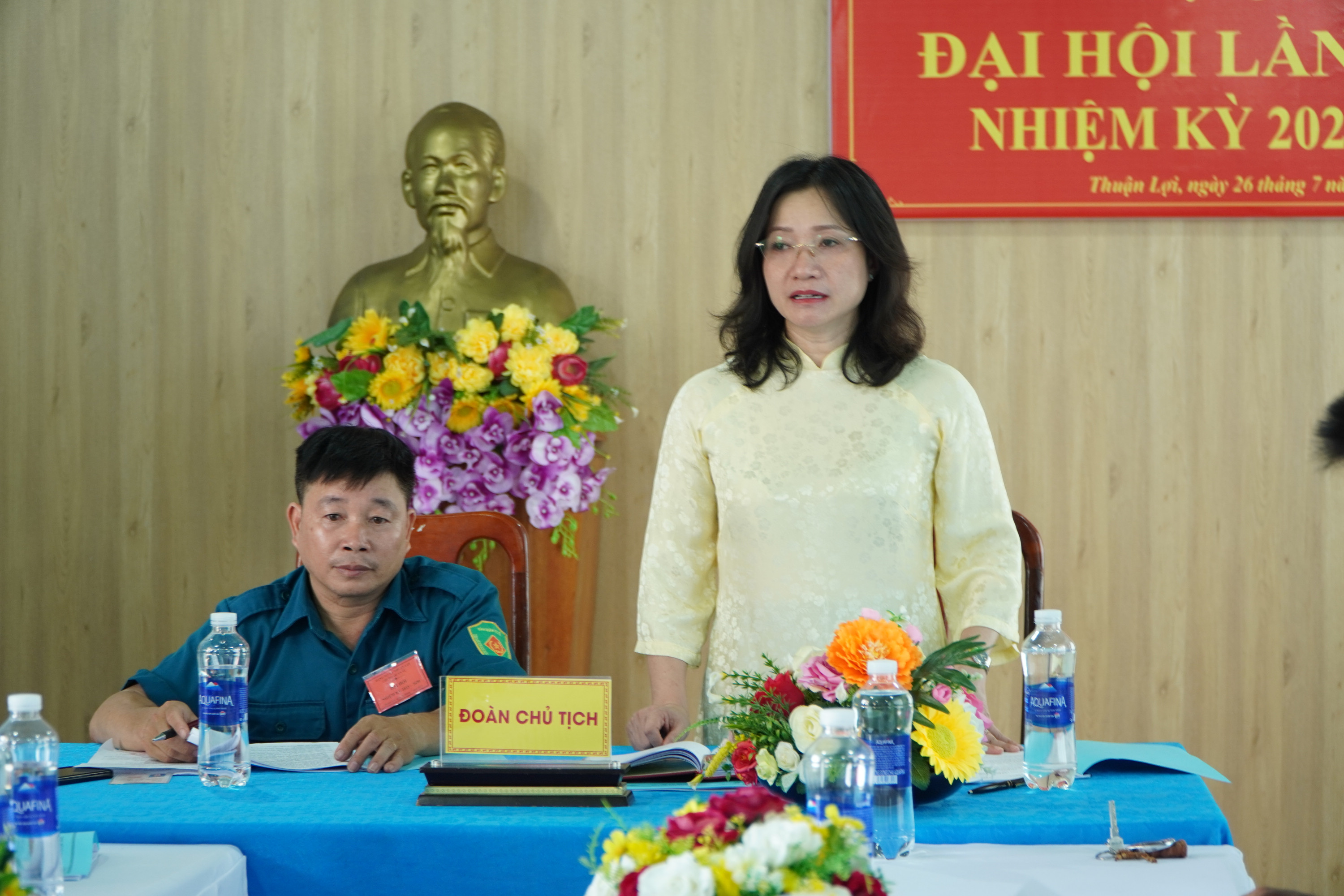 Đồng chí Bùi Thị Minh Thúy, Bí thư Đảng ủy xã, Bí thư chi bộ Quân sự xã phát biểu nhấn mạnh tại Đại hội: “ Sau khi đơn vị được thành lập, kiện toàn trong điều kiện xã nhà vừa thực hiện sáp nhập địa giới hành chính. Đây là dấu mốc chính trị quan trọng, thể hiện sự trưởng thành của lực lượng quân sự xã về cả tổ chức, tư tưởng và vai trò trong hệ thống chính trị. Tại Đại hội hôm nay, các đồng chí đảng viên đã thể hiện vai trò, trách nhiệm, thẳng thắn nhìn vào các hạn chế, yếu kém, đặc biệt là các khó khăn ban đầu mà chi bộ phải lãnh đạo đơn vị khắc phục về yêu cầu nhiệm vụ chuyên môn,về quân số, về cơ sở vật chất.. đồng thuận cao với các giải pháp đề ra nhằm tổ chức thực hiện thành công nghị quyết Đại hội. Chi bộ Quân sự là chi bộ đặc thù, vừa thực hiện nhiệm vụ chính trị – quốc phòng, vừa gắn bó chặt chẽ với công tác dân vận, phát triển kinh tế – xã hội và xây dựng hệ thống chính trị cơ sở. Trước yêu cầu ngày càng cao trong tình hình mới, tôi đề nghị chi ủy chi bộ, tập thể lãnh đạo trên cơ sở lấy nghị quyết Đại hội làm kim chỉ nam cho thực hiện nhiệm vụ, bám sát các chỉ tiêu, giải pháp. Tôi tin tưởng rằng với tinh thần đoàn kết, kỷ luật, phát huy truyền thống của lực lượng vũ trang nhân dân, Chi bộ Quân sự xã Thuận Lợi sẽ hoàn thành xuất sắc nhiệm vụ được giao, đóng góp xứng đáng vào thành công chung của toàn Đảng bộ xã”.