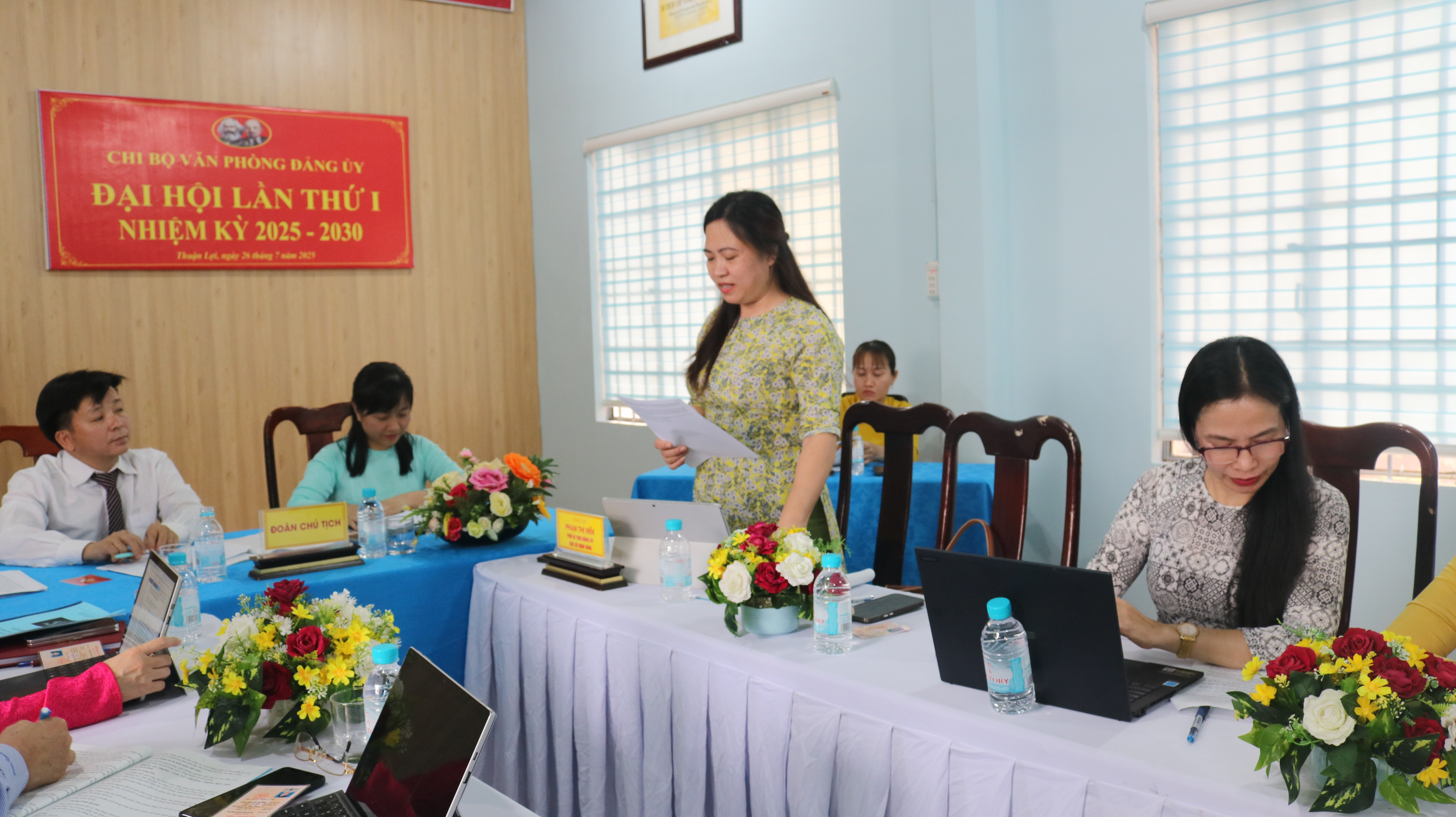 Đồng chí Phạm Thị Mến - Bí thư chi bộ Ủy ban Kiểm tra Đảng ủy phát biểu tại Đại hội