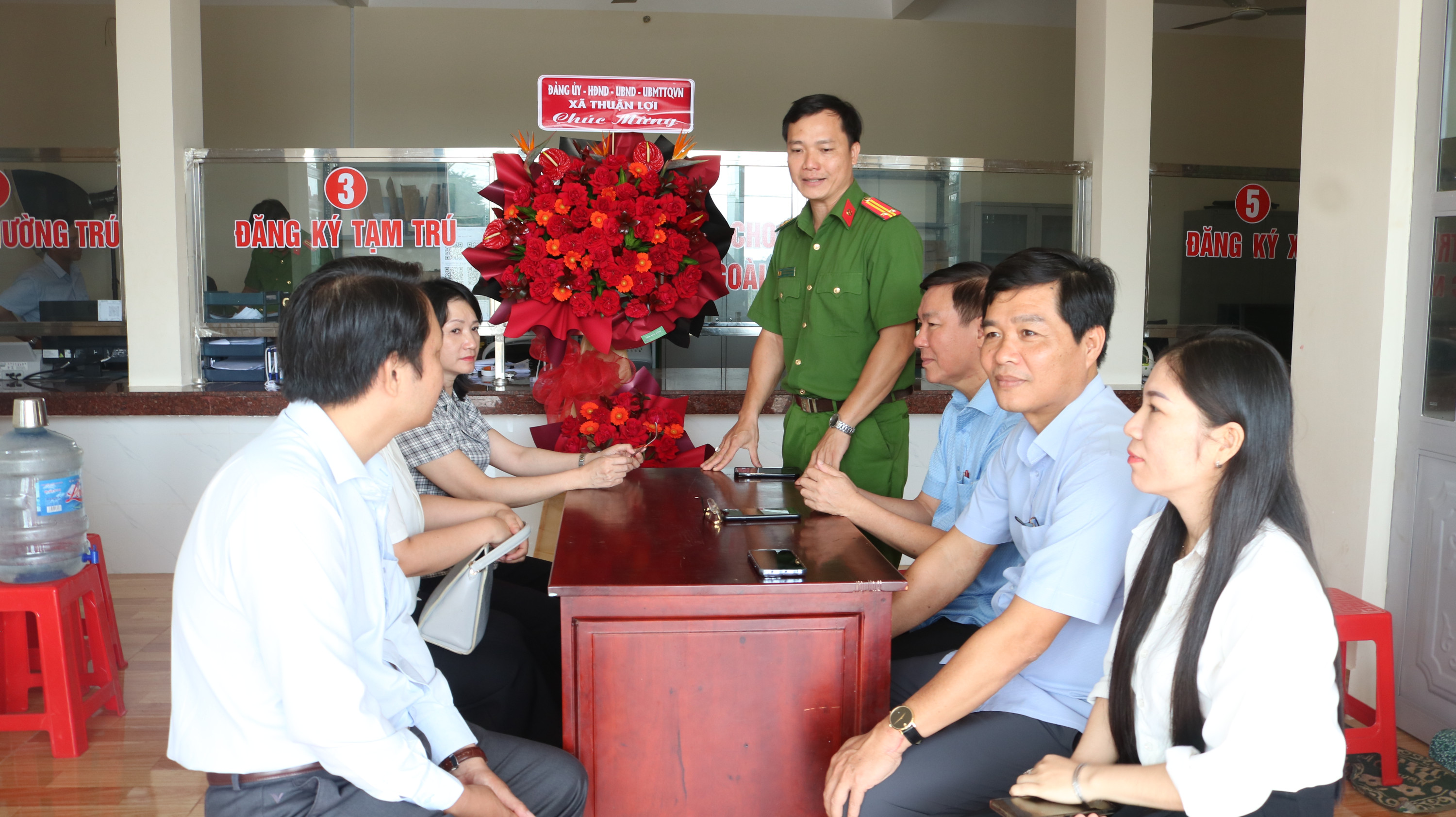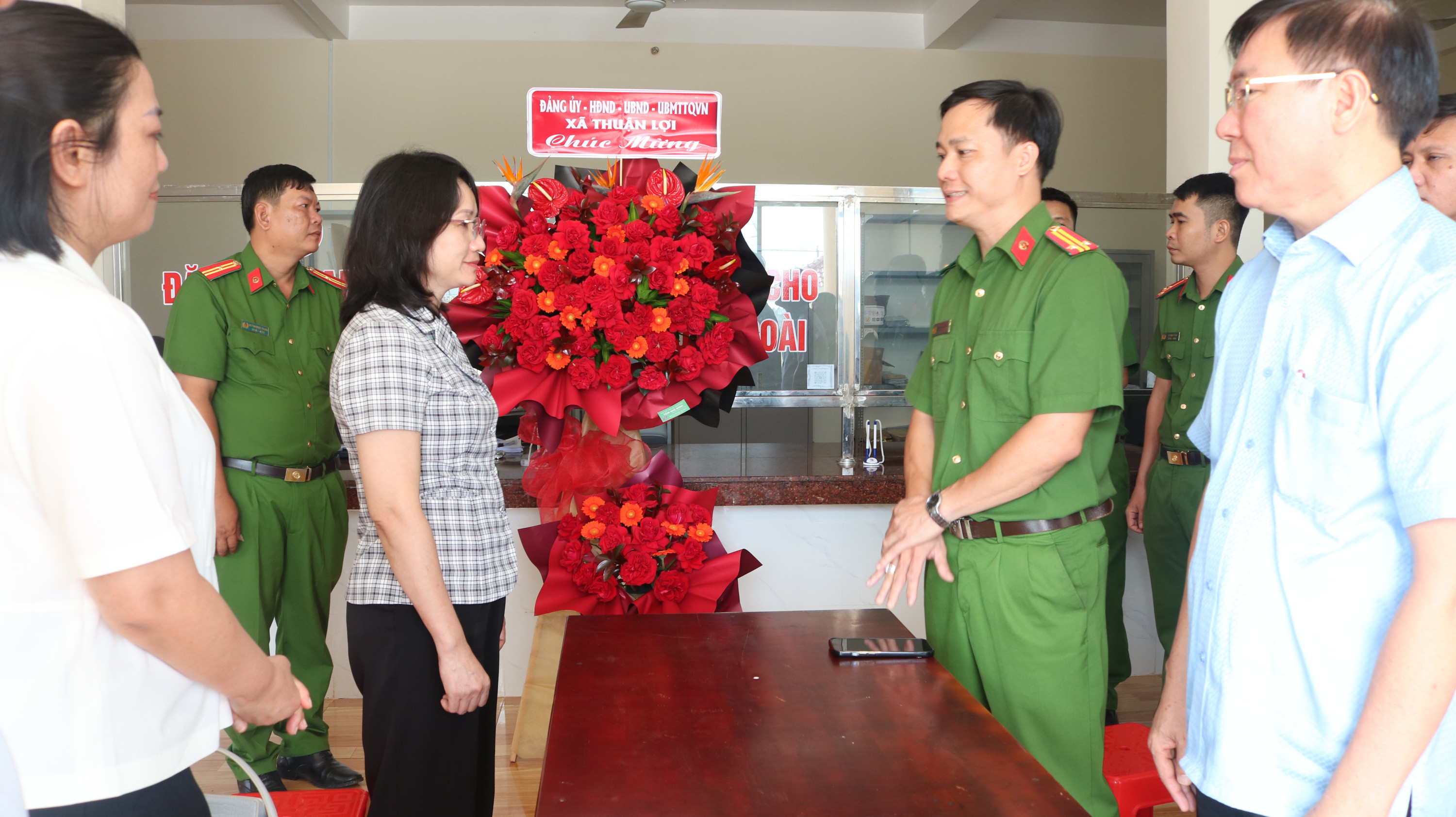 Đảng ủy, HĐND, UBND, UBMTTQ Việt Nam xã Thuận Lợi đã đến thăm, tặng hoa chúc mừng Công an xã Thuận Lợi.