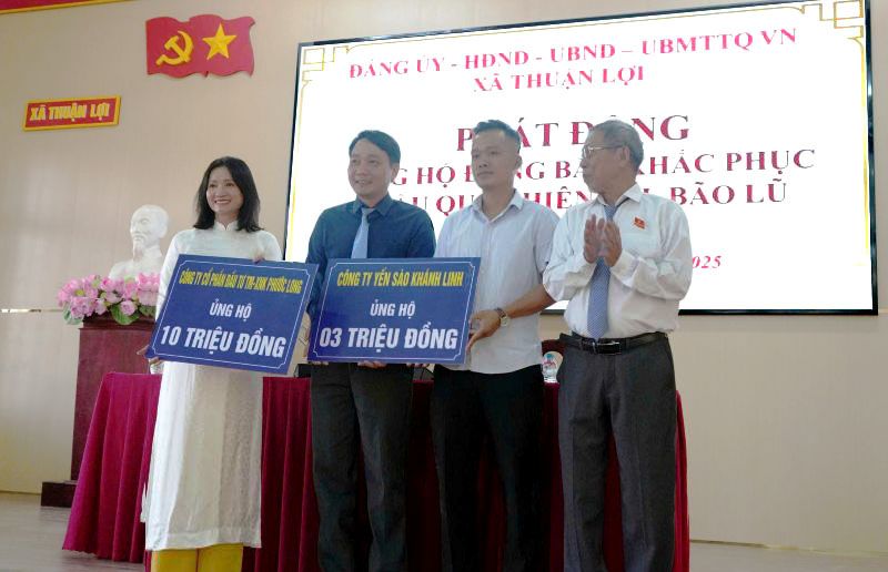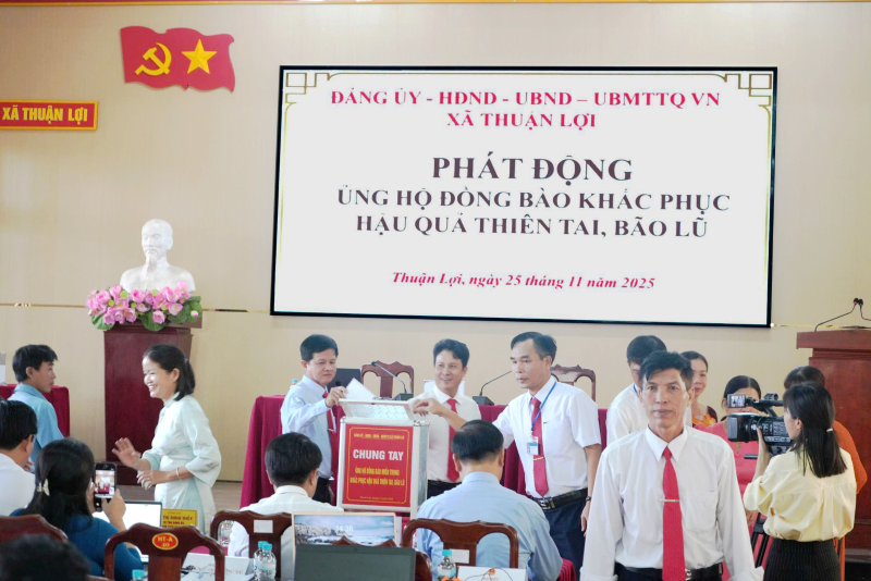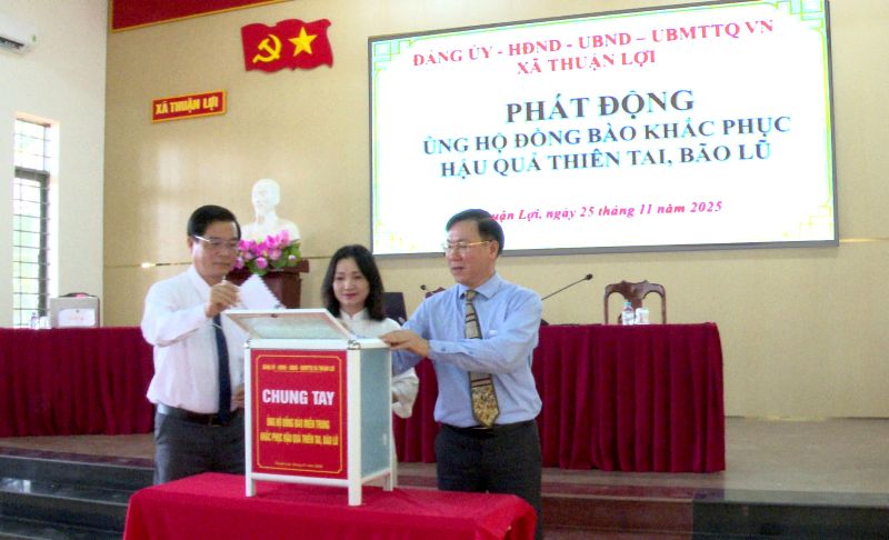 Chiều ngày 25/11/2025, Đảng ủy – HĐND – UBND – Ủy ban MTTQ Việt Nam xã Thuận Lợi đã tổ chức chương trình phát động vận động ủng hộ đồng bào miền Trung – Tây Nguyên khắc phục hậu quả thiên tai. Ngay sau lễ phát động, các đại biểu, cán bộ, công chức, viên chức và các tổ chức, doanh nghiệp trên địa bàn đã tích cực tham gia ủng hộ với tinh thần tự nguyện, trách nhiệm, thể hiện tấm lòng sẻ chia hướng về đồng bào vùng lũ.