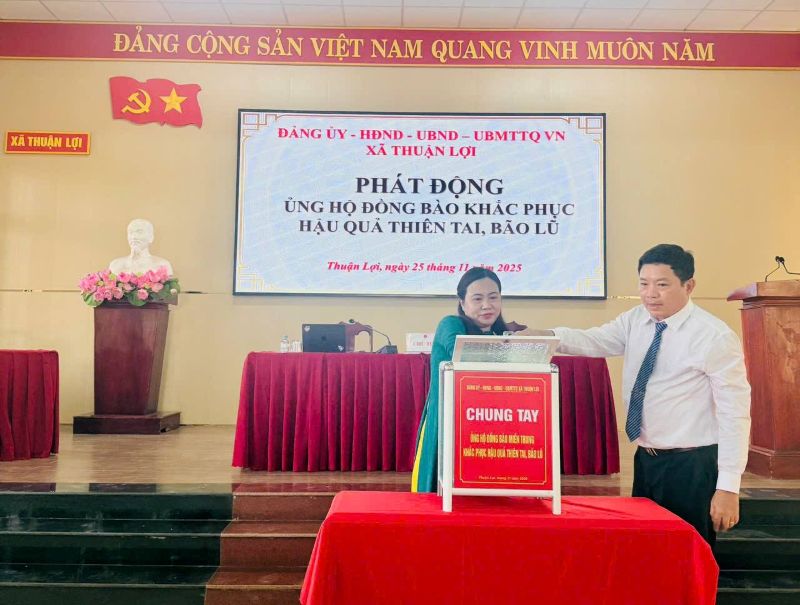 Chiều ngày 25/11/2025, Đảng ủy – HĐND – UBND – Ủy ban MTTQ Việt Nam xã Thuận Lợi đã tổ chức chương trình phát động vận động ủng hộ đồng bào miền Trung – Tây Nguyên khắc phục hậu quả thiên tai.