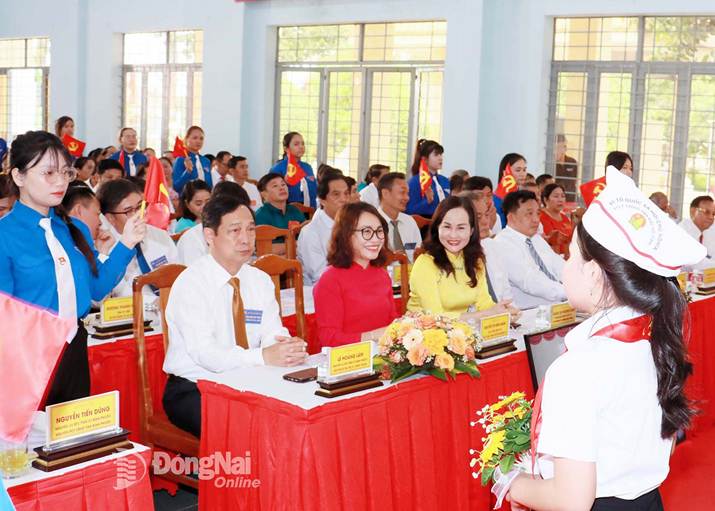 Đoàn đại biểu thanh, thiếu nhi xã chúc mừng đại hội. Ảnh: Như Nam