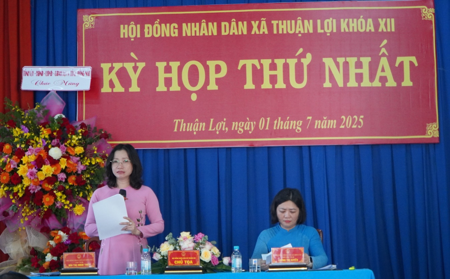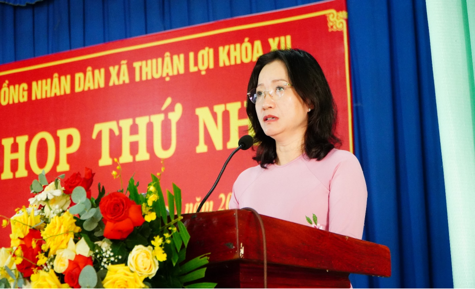 Phát biểu tại kỳ họp, Bí thư Đảng ủy – Chủ tich HĐND xã Thuận Lợi Bùi Thị Minh Thúy nhấn mạnh: Xã Thuận Lợi hôm nay được hình thành từ sự hợp nhất và hội tụ của văn hóa- vùng đất – con người của Thuận Lợi – Thuận Phú trước đây, thừa hưởng truyền thống cách mạng kiên trung, tinh thần đoàn kết và lòng yêu quê hương của các thế hệ đi trước. Trên vùng đất anh hùng này, chúng ta đang đứng trước những cơ hội và thách thức đan xen, đòi hỏi phải có một bộ máy chính quyền tinh gọn, hiệu quả, gần dân – vì dân – phục vụ dân. Việc kiện toàn HĐND và bộ máy chính quyền địa phương không chỉ là nhiệm vụ về mặt tổ chức, mà còn là sứ mệnh chính trị – thể hiện niềm tin, khát vọng và trách nhiệm của mỗi đại biểu trước Nhân dân. HĐND xã khóa XII cam kết sẽ không ngừng đổi mới, nâng cao chất lượng hoạt động, lắng nghe ý kiến từ thực tiễn, từ cuộc sống của người dân để có những quyết sách đúng, trúng và kịp thời. Mỗi đại biểu phải thực sự là cầu nối giữa chính quyền với Nhân dân, là người đại diện cho tiếng nói, cho quyền lợi hợp pháp, chính đáng của cử tri.
