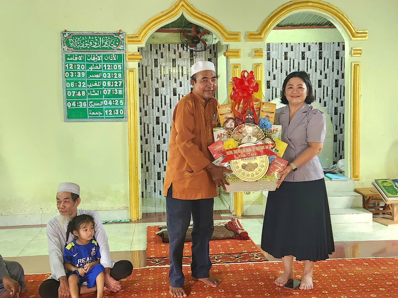 Bà Lường Thị Xuyến - Ủy viên Ban Thường vụ, Phó Chủ tịch HĐND tặng quà tập thể cho Thánh đường
