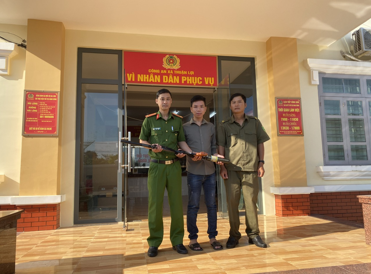 Người dân tự giác giao nộp khẩu súng hơi tại Công an xã Thuận Lợi