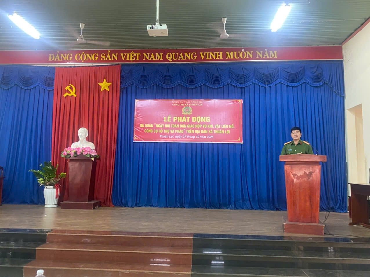 Phát biểu  tại buổi lễ, Thượng tá Nguyễn Văn Tuyển – Trưởng Công an xã Thuận Lợi nhấn mạnh: “Công tác quản lý, sử dụng và vận động nhân dân giao nộp vũ khí, vật liệu nổ, công cụ hỗ trợ và pháo là nhiệm vụ trọng tâm, cần sự đồng hành của toàn dân. Mỗi người dân hãy là một tuyên truyền viên tích cực, góp phần bảo đảm an ninh, trật tự, giữ gìn cuộc sống bình yên, hạnh phúc.”