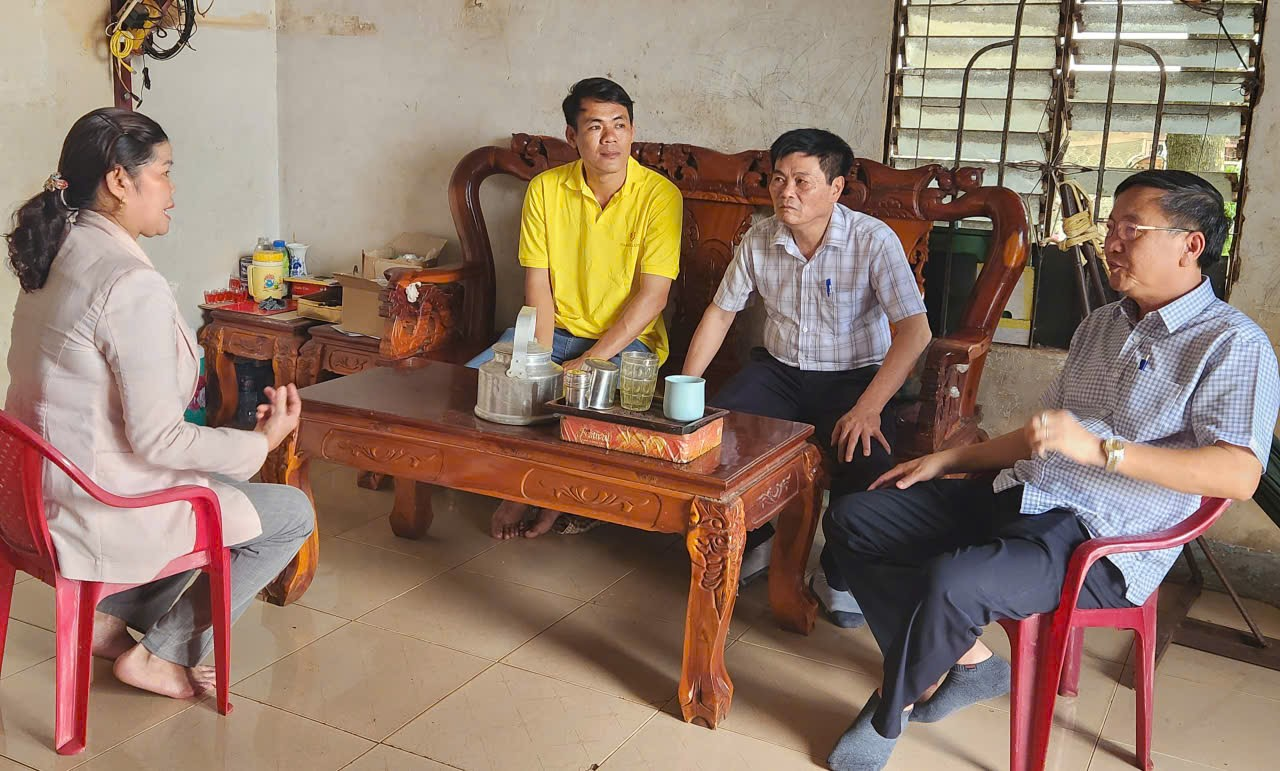 Các thành viên trong Đoàn đã nghe đại diện Phòng giao dịch NHCSXH Đồng Phú báo cáo kết quả thực hiện tín dụng chính sách năm 2025 trên địa bàn xã Thuận Lợi