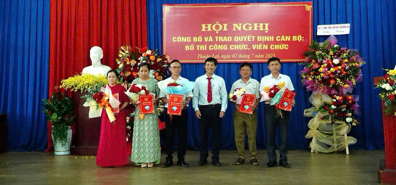 Lãnh đạo HDND, UBND xã Thuận Lọi trao các quyết định về công tác cán bộ, bố trí cán bộ, CCVC