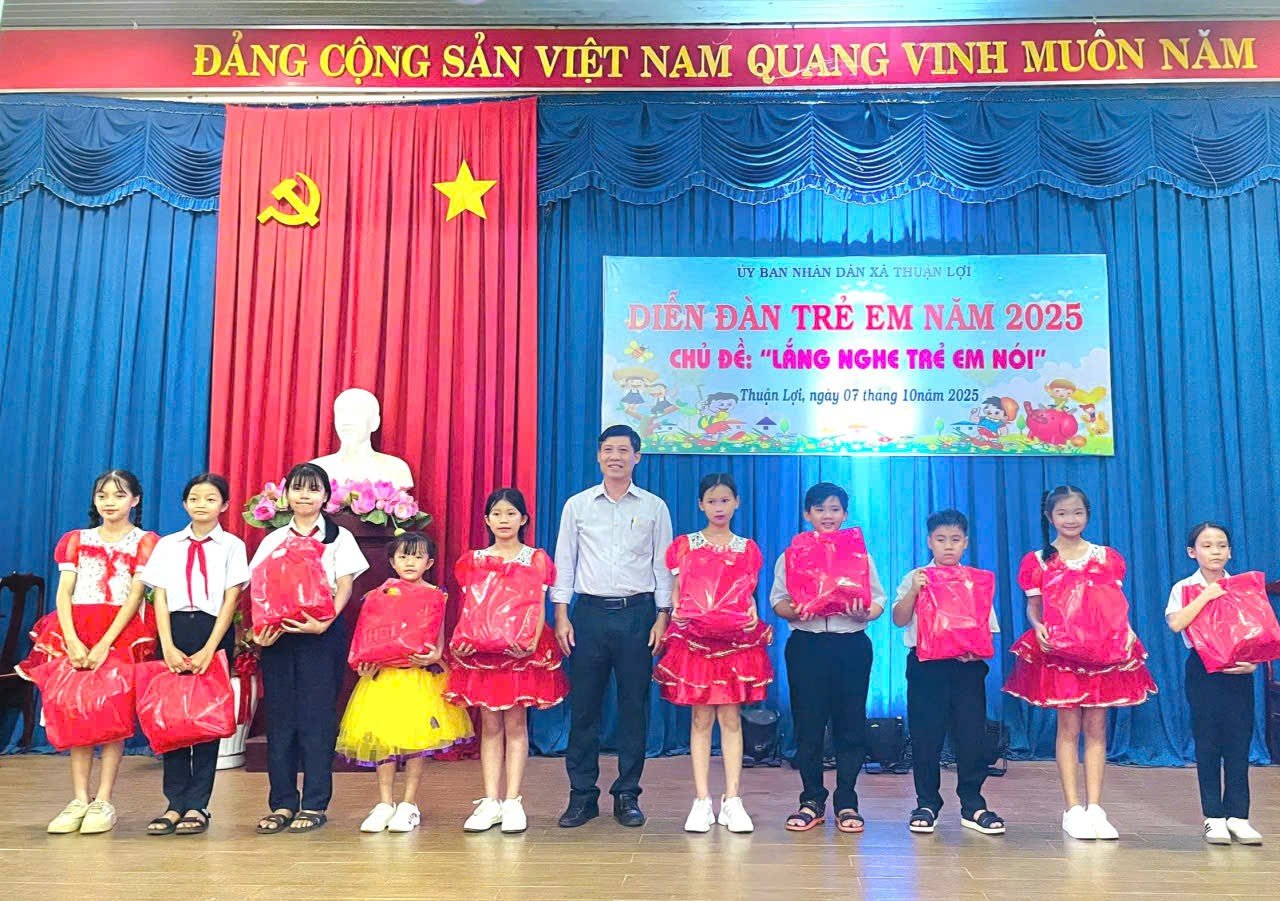 Chiều ngày 10/7/2025, tại Hội trường Ủy ban nhân dân xã Thuận Lợi, UBND xã đã tổ chức Diễn đàn trẻ em năm 2025 với chủ đề “Lắng nghe trẻ em nói”. Hoạt động nhằm tạo cơ hội để trẻ em được bày tỏ ý kiến, nguyện vọng của mình về những vấn đề liên quan đến trẻ em; đồng thời góp phần nâng cao nhận thức, trách nhiệm của gia đình, nhà trường và xã hội trong công tác bảo vệ, chăm sóc và giáo dục trẻ em.