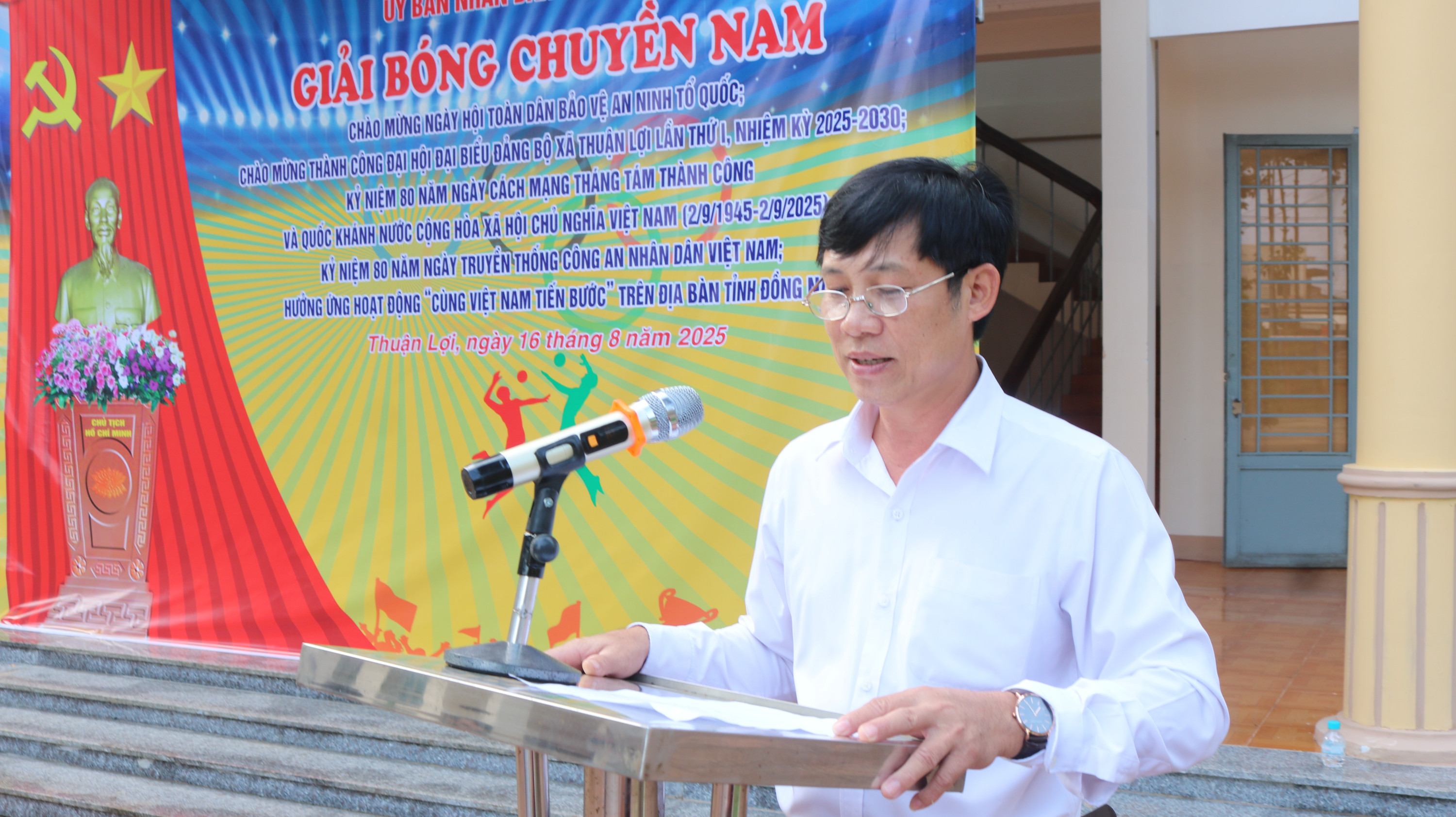 Sáng ngày 16/8, UBND xã Thuận Lợi tổ chức Giải bóng chuyền nam chào mừng “Ngày hội toàn dân bảo vệ an ninh Tổ quốc” năm 2025; chào mừng thành công Đại hội Đại biểu Đảng bộ xã lần thứ I, nhiệm kỳ 2025-2030; kỷ niệm 80 năm Cách mạng Tháng Tám và Quốc khánh 2/9.
