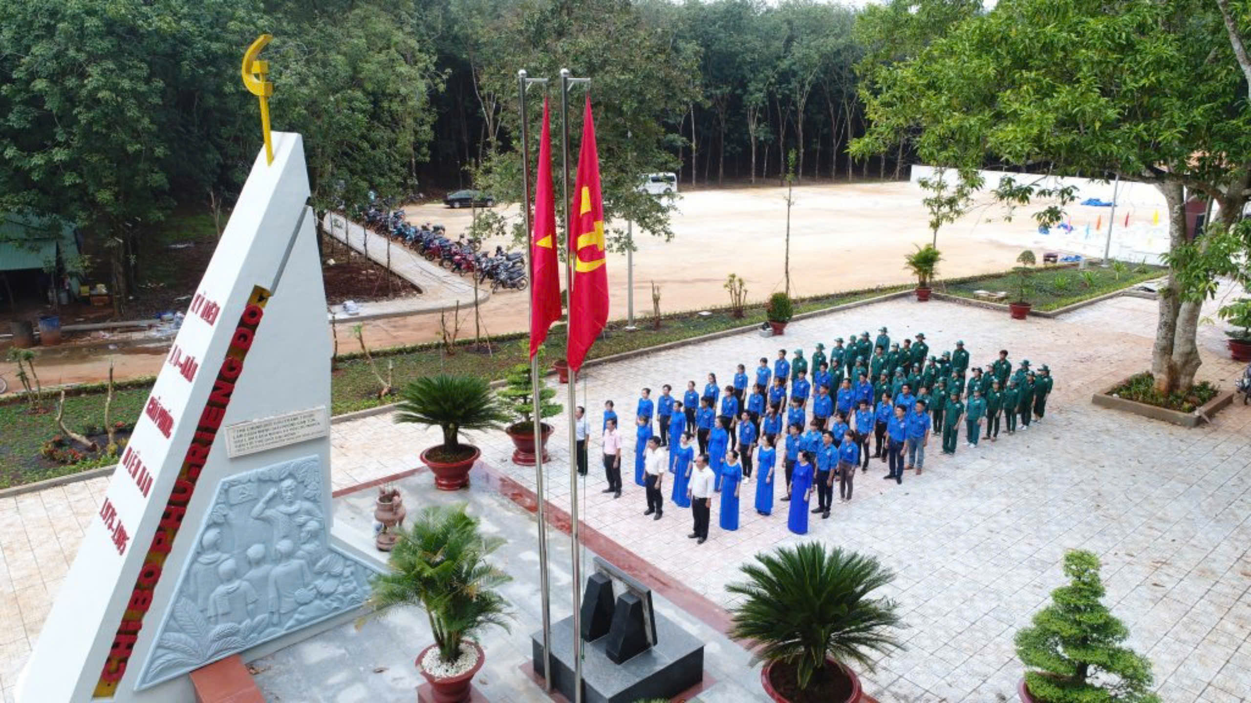 Để giáo dục tinh thần yêu nước cho thế hệ trẻ, Cao su Đồng Phú (tiền thân là đồn điền Phú Riềng) đã tiến hành xây dựng Tượng đài Phú Riềng Đỏ với chiều cao 10m, chân tượng dài 3,4m, rộng 1,7 m. Ngày 12/2/1999, địa điểm thành lập Chi bộ Đông Dương Cộng sản Đảng ở Phú Riềng đã được công nhận là di tích lịch sử quốc gia. Địa điểm này không chỉ có ý nghĩa quan trọng đối với công nhân cao su mà còn là nơi để ôn lại lịch sử của Nhân dân địa phương cùng những người đam mê lịch sử, để tìm hiểu về một thời kỳ hào hùng của Phú Riềng Đỏ trong quá khứ.